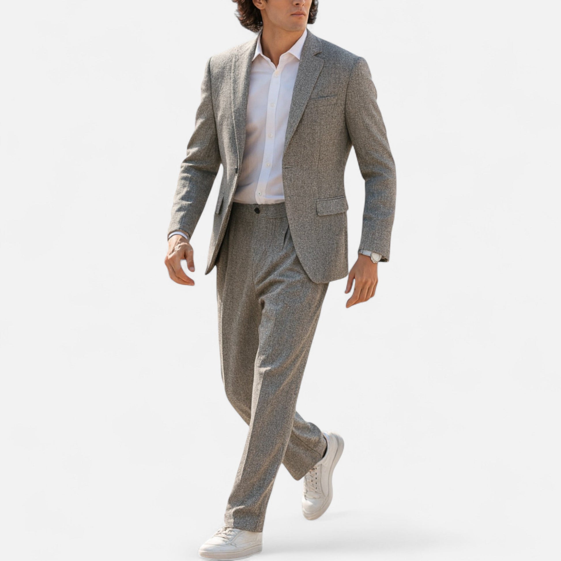 Este blazer en cachemira premium representa la máxima expresión del estilo clásico masculino. Su corte estructurado y tejido de lujo hablan de tradición sartorial y refinamiento moderno. Es una prenda pensada para el hombre que valora la elegancia silenciosa y que entiende que cada detalle comunica estatus y buen gusto.