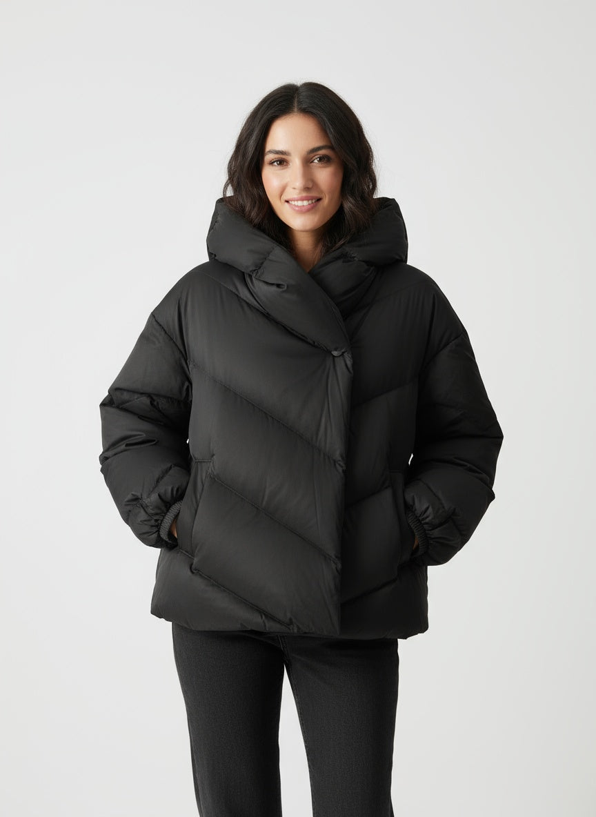 La Selvya representa la armonía entre elegancia y funcionalidad. Su diseño acolchado con líneas diagonales y cuello envolvente crea una silueta moderna que resalta la figura sin perder comodidad. Fabricada con materiales premium, ofrece ligereza y calidez, perfecta para los días fríos con un toque de distinción. Una prenda que combina a la perfección la moda urbana con la sofisticación atemporal.