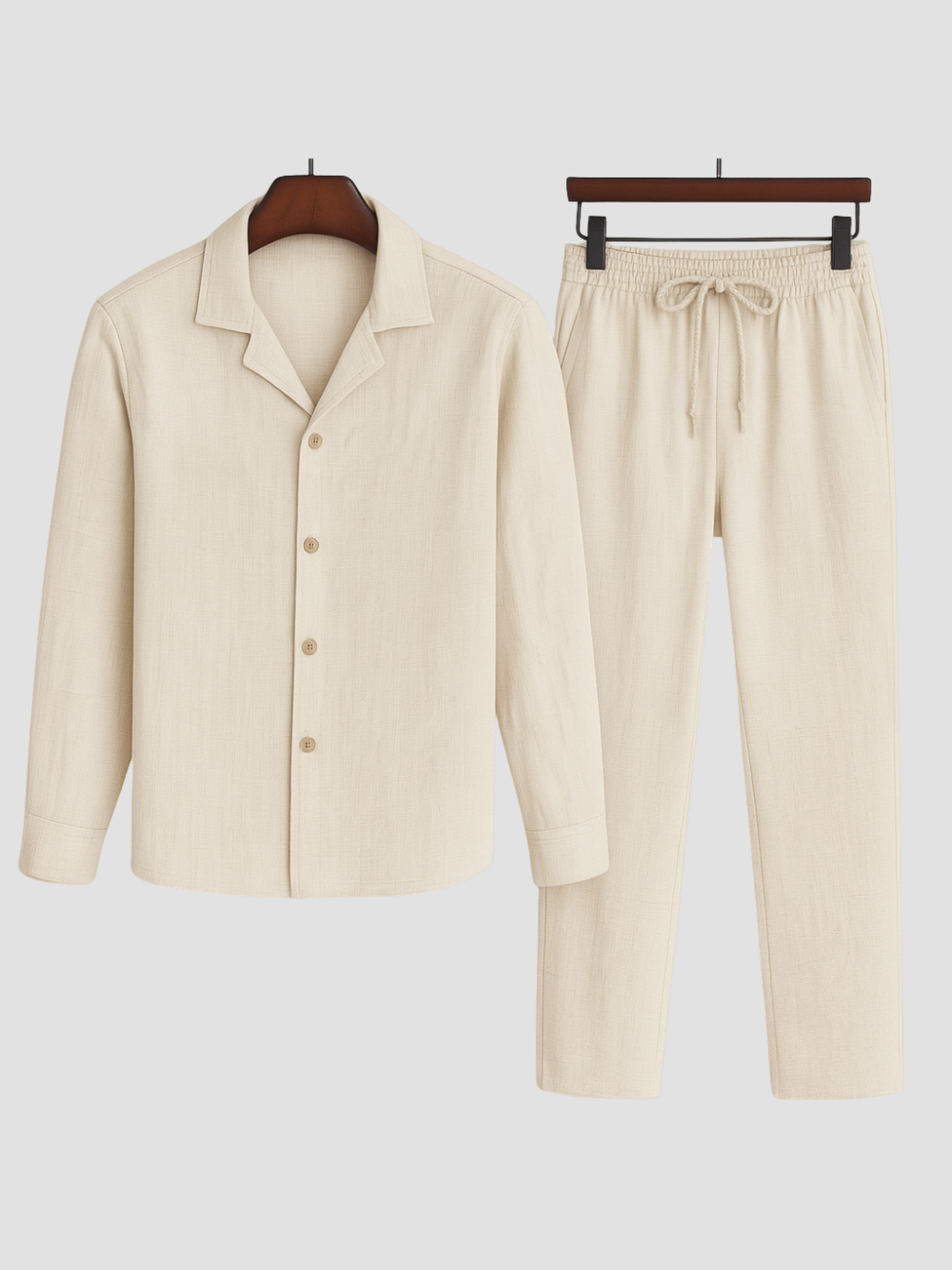 ELOY es la definición de comodidad elegante. Confeccionado con lino ligero y transpirable, este conjunto está diseñado para esos días donde el estilo y el frescor van de la mano. Inspirado en los tonos suaves del Mediterráneo, ELOY es perfecto para escapadas veraniegas, cenas al atardecer o simplemente para relajarse con clase.