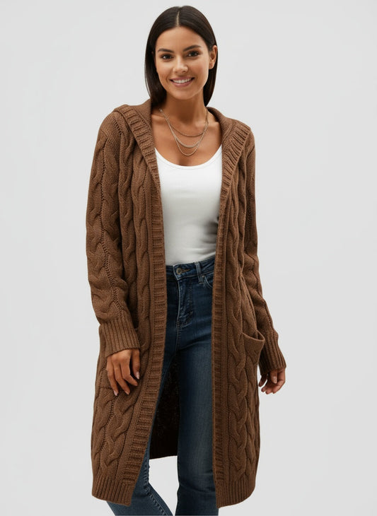 TULIA | CÁRDIGAN LARGO DE PUNTO – VERSATILIDAD MODERNA CON DETALLE DE CAPUCHA