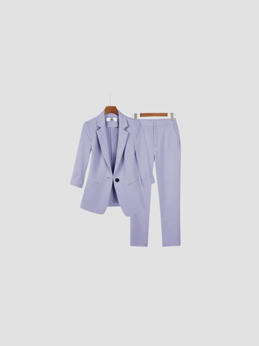 Confeccionado en un tejido sastre estructurado, el conjunto incluye una americana de un solo botón con solapas definidas y un pantalón de corte estrecho para una silueta elegante. Acabado con bolsillos discretos y un forro limpio, combina sofisticación y funcionalidad. Perfecto para reuniones profesionales, ocasiones de noche o con un estilo más informal, se adapta fácilmente a todas las estaciones. Se recomienda limpieza en seco para conservar su forma.